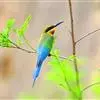 栗喉蜂虎是蜂虎科蜂虎属的鸟类。有热带鸟类羽毛艳丽的特征:喉部是栗红色的,黑色的过眼纹,…