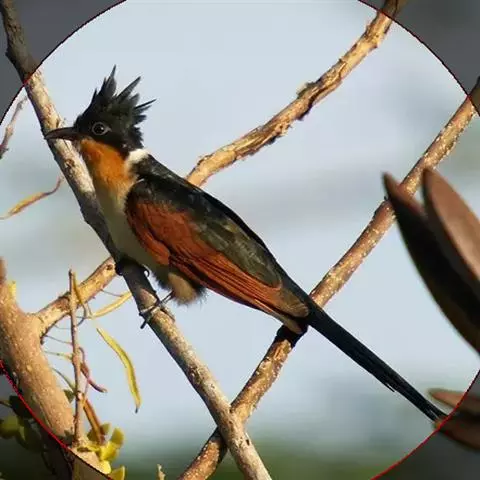 橙胸咬鹃:全长约28厘米。雄鸟头、颈橄榄绿色,上体及中央尾羽栗色;中央尾羽具黑色端,…