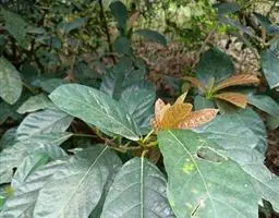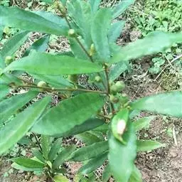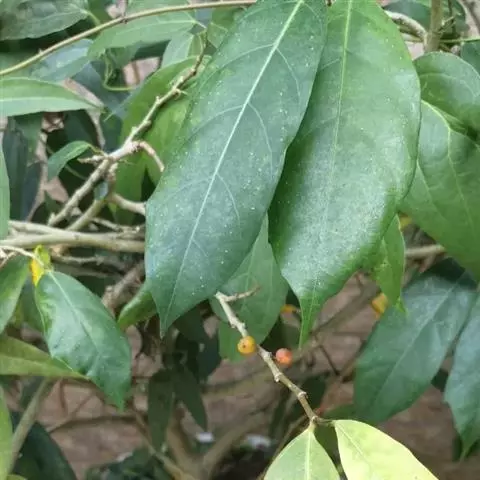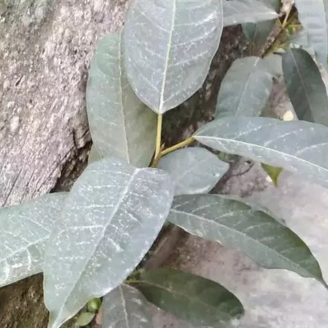 叶狭椭圆形,长5-10厘米,宽1.5-4厘米,全缘,先端短尖至渐尖,基部楔形,两面光 滑无毛,干后灰绿色,基生侧脉短,侧脉4-8对,小脉在表面明显;叶柄短,长约1- 2厘米;托叶披针形,无毛,长约1厘米。
