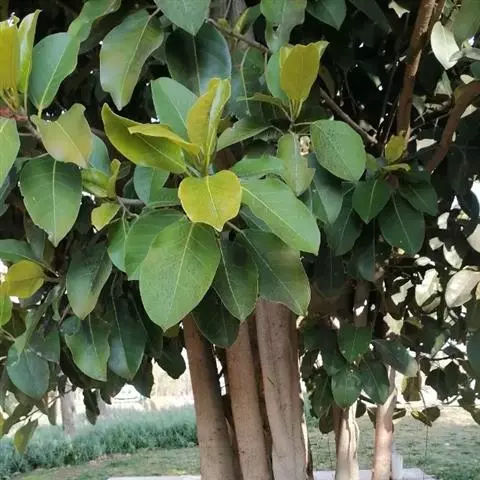 印度榕,别名橡皮树,桑科榕属多年生常绿乔木植物。株高30米;树皮灰白色,平滑;叶厚革质,…