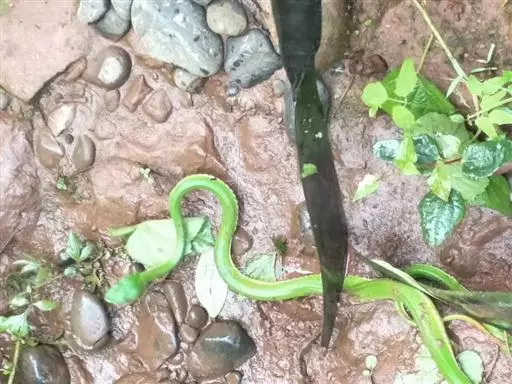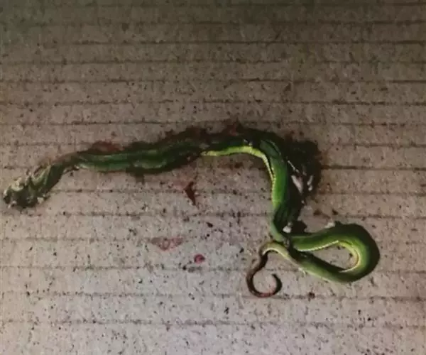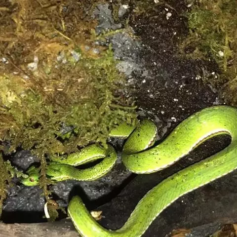 白唇竹叶青是卵胎生,7—8月产仔,每产7—8条,最高可产14条。刚出生的小蛇就有毒牙,也能伤人。