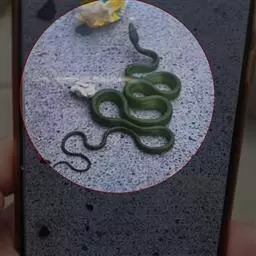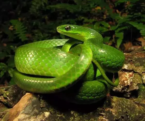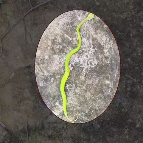 白唇竹叶青(学名:Cryptelytrops albolabris)头部呈三角形,颈细,形似烙铁。头顶具细鳞,吻侧有颊窝。上颌仅具白唇竹叶青管牙,有剧毒。体背鲜绿色,有不明显的黑横带;腹部黄白色。体最外侧自颈达尾部有一条白纹;上唇黄白色。鼻间鳞大;鼻鳞与颊窝间一般无鳞片。