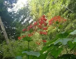 红萼龙吐珠马鞭草科大青属常绿木质藤本。叶对生,纸质,具柄,卵状椭圆形,全缘,先端渐尖,基部近圆形。…