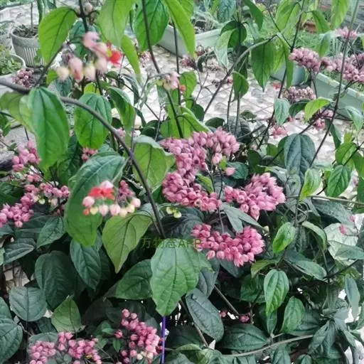 该种为美丽的观赏植物,开花时深红色的花冠由白色的萼内伸出,状如吐珠。 花形奇特、开花繁茂,其花皆属苞片组成的棱形花萼,像一个个奶白色的“杨桃仔”,在它尖端的裂口间,吐出五根绛红的花儿,疏密匀称地布满在叶片之上,如同把蕴藏生命之火的红珠,吐完一颗又一颗。一般盆栽因受剪枝的限制,植株长得很矮。主要用于温室栽培观赏,可做花架,也有作盆栽点缀窗台和夏季小庭院,与供公园或旅游基地砌作花篮、拱门、凉亭和各种图案等造型,为游客增添雅兴。