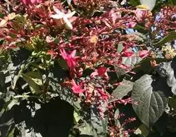 臭茉莉唇是形科大青属植物,臭茉莉体被毛较密,伞房状聚伞花序较密集,萼裂片披针形,花冠白色或淡红色,…