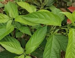 叶片纸质,狭卵形或卵状长圆形,长4-10厘米,宽1.5-4厘米,顶端渐尖,基部近圆形,全缘,表面被小疣毛,略粗糙,背面近无毛,基脉三出;叶柄长1-2厘米。