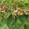 龙吐珠属马鞭草科,会生叶斑病,是半知菌感染所致。起初只是一个个小褐点儿,如不及时治疗会产生大片的黑斑,叶片枯黄死掉。所以,一旦发现生病,应立即用百菌清800倍液,进行叶面喷雾,隔7-8天一次,连续2-3次,可基本痊愈。