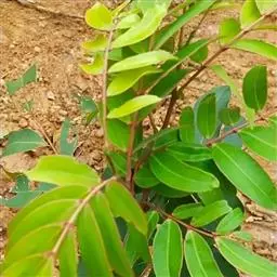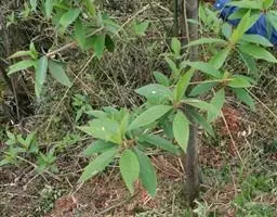 紫檀幼苗 紫檀幼苗在温度3-5℃易受冻害,因此应选择环境温暖、阳光充足的苗圃地。以先育小苗再移植分床为宜,小苗10-20厘米高时即可移植。播种基质可用河沙或沙土。以荚果播种,播种前应将荚果除去果翅(剪去或火烧)。播种时床面应先用木板刮平,平铺荚果不重叠。覆土以不见种子为度,切勿太厚,不然出苗难,然后再盖些稻草等保湿。7天开始出苗,一般荚果发芽率50%以上,每个荚果出苗2-3株,多则4株,少则l株。出苗后1个月就可移植分床或移入容器袋,分床株行距为20厘米×20厘米。