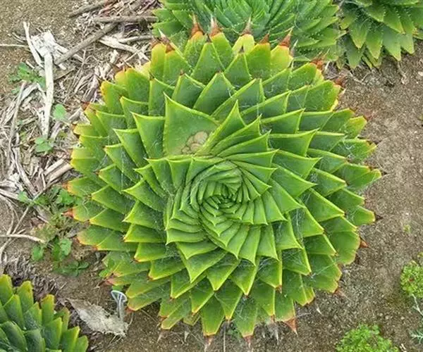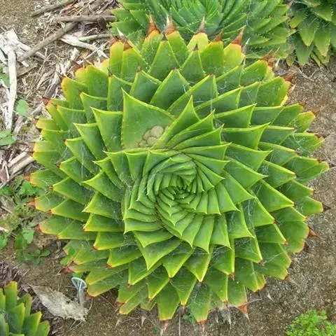 多叶芦荟(学名:Aloe polyphylla Pillans):是一种无茎多浆植物。每株是一个独立单生莲座丛,植株直径达高30厘米,宽90厘米立。叶呈莲座状螺旋形排列,翠绿色至灰绿色,肉质柔软,多汁肥厚。叶缘有不规则锯齿。成型后每株130-150枚叶片,成螺旋状排列,螺旋有时为顺时针,有时为逆时针。花茎高60厘米,花红色至肉粉红色,花柄有分枝。每条分支末端开一花,花朵紧凑,花期春季至初夏。