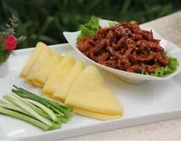京酱肉丝,是一道知名度很高的菜肴,它是北京菜中的经典代表菜之一。制作时选用猪瘦肉为主料,辅以甜面酱…