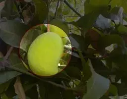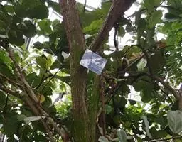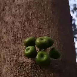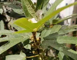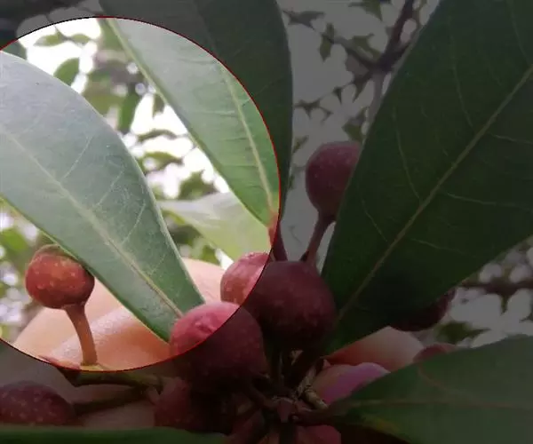 榕果成对或单生叶腋,球形,直径10-12毫米,表面有瘤体,顶部苞片脐状突起,基生苞片3,卵状三角形,基部微合生,总梗长8-12毫米;瘿花子房球形,花柱短,侧生;雌花生另一植株榕果内壁,花被片3-4,子房肾形,花柱侧生,细长。瘦果表面有瘤体。花期12月至翌年6月。