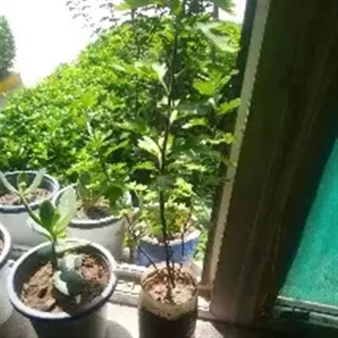 炼苗移栽:待生根的组培苗的苗高长3厘米以上,当根长超过5厘米时,松开组培瓶的瓶盖,往瓶中注入少量无菌水以防止培养基干裂,于6小时后半挪开瓶盖,并添加无菌水,再过18小时,移走瓶盖,让30-40微摩尔/(平方米·秒)光强的灯光直照再生植株培养2天,期间加无菌水若干次。然后小心地将培养基捣碎,拿出再生植株,用流水小心将残留的琼脂冲洗干净,将植株定植于曾消毒过的加入蛭石的菜园土中,株距2厘米以上,浇透水并用透明的聚乙烯塑料薄膜覆盖以保温保湿,室内温度控制在18-22℃,3天后揭开聚乙烯塑料薄膜四角,次日将聚乙烯塑料薄膜全部揭开,待新叶展开后即可带土移栽至大田。
