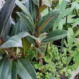 印度榕,别名橡皮树,桑科榕属多年生常绿乔木植物。株高30米;树皮灰白色,平滑;叶厚革质,…