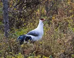 白马鸡共有四个亚种。是大型雉类,体长80-100厘米。通体大都白色,头侧绯红色;头顶具黑色短羽,…