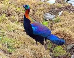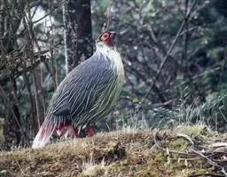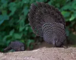 黑长尾雉大型鸡类,体长53~88厘米。雄较雌大。雄鸟通体紫蓝色,脸鲜红色,翅上有一条显著的白色翅斑…