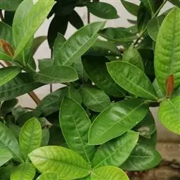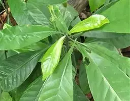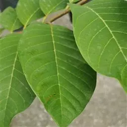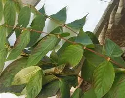 叶纸质,长圆形,长5-14厘米,宽2-5厘米,先端钝圆,基部楔形或稍圆,侧脉8-10对,近叶缘连成边脉;叶柄长3-6毫米,托叶卵形,长0.4-1厘米,先端长渐尖,渐尖部分长3-4毫米。3歧伞房聚伞花序长达7厘米,花序梗长约4厘米。