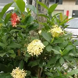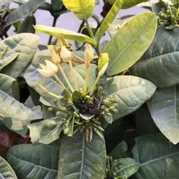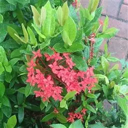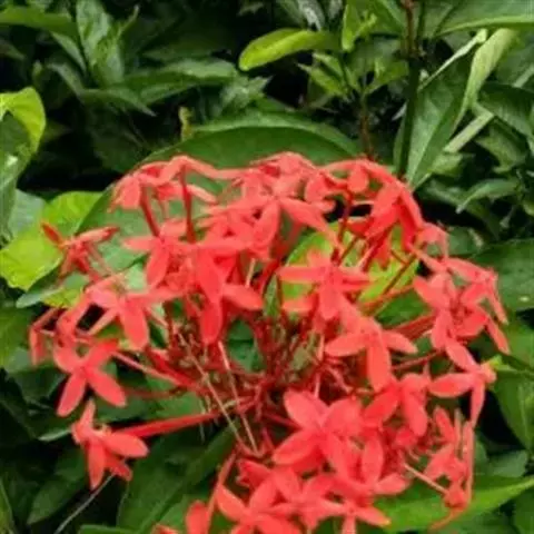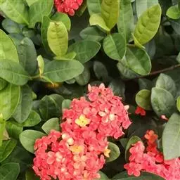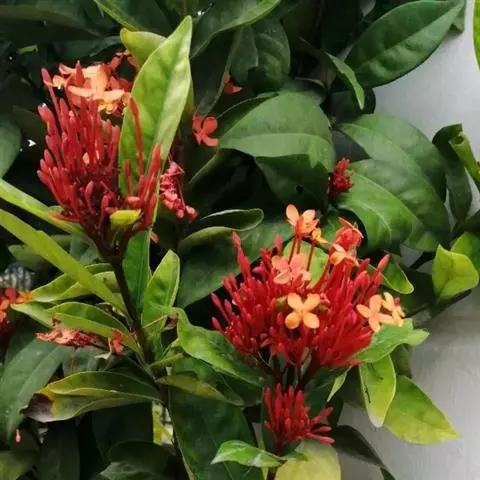 海南龙船花(Ixora hainanensis Merr.),灌木;仅冠筒喉部被疏毛,全株无毛。