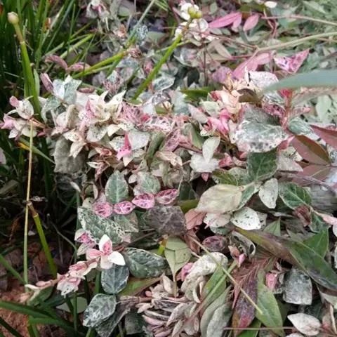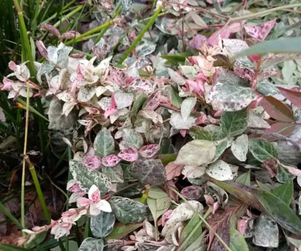 在全光照情况下,从早春发芽开始,有咖啡色、粉红、全白、绿白相间等色彩,冬季以褐红色为主。五彩络石在半阴条件下生长也很好,但叶色以绿白相间为主。