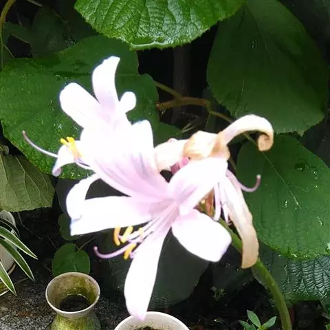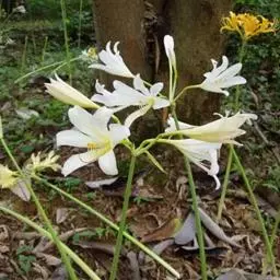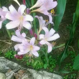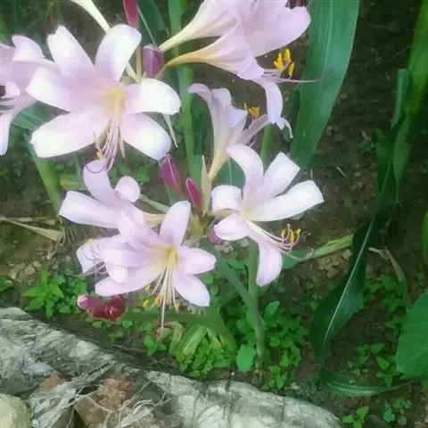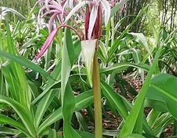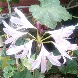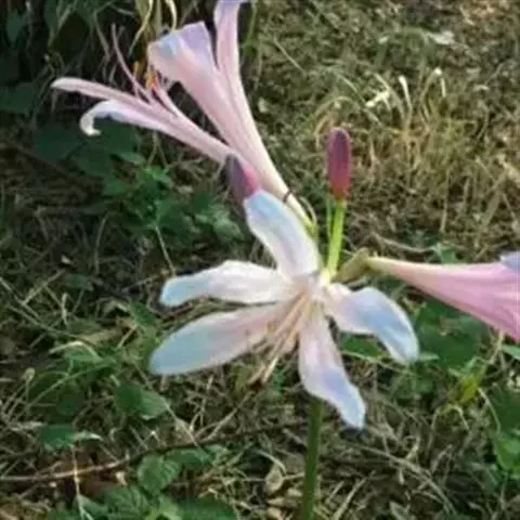 长筒石蒜草本,地生。鳞茎卵球形;叶披针形;伞形花序,有花5-7朵,花白色;花被裂片腹面稍有淡红色条纹,…