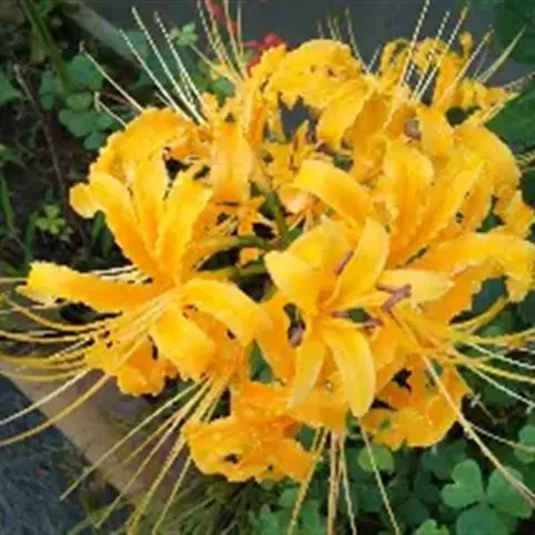 中国石蒜草本,地生。植株无毛,叶带状,顶端圆;伞形花序,花黄色;花被裂片背面具淡黄色中肋,倒披针形…