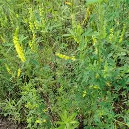 草木樨 Pall.)是豆科草木樨属的二年生草本植物。茎直立粗壮,多分枝,具纵棱,…