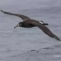 近种区别:黑脚信天翁与短尾信天翁亚成体极相似,但短尾信天翁亚成体嘴、脚均不为黑色,身上有明显的白斑,而且越接近成鸟白斑越大;另外短尾信天翁个体亦较大,亦可明显与之区别;短尾信天翁成鸟体羽基本为白色,嘴粉色,个体大,容易区别。