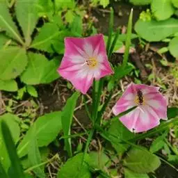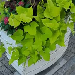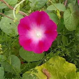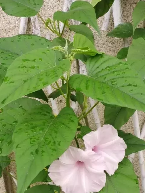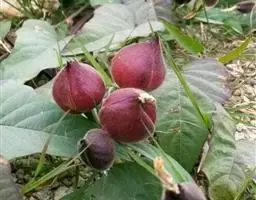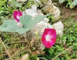番薯 Lam.),多年生草质藤本植物,具有乳汁;其块根为白、红或黄色;茎生不定根;叶呈宽卵形或卵状心形,叶色有浓绿、黄绿、紫绿等,前端渐尖,基部呈心形或近平截;花冠为粉红、白、淡紫或紫色,呈钟状或漏斗状,无毛;蒴果呈卵形或扁圆形;由于番薯是于异花授粉,自花授粉常不结实,所以有时只见开花不见结果。 种子1-4粒,通常2粒,无毛。番薯原产于南美洲及大、小安的列斯群岛,现已广泛栽培在全世界的热带、亚热带地区,但在一些较北的地区如黑龙江省也已栽种成功,中国大多数地区都普遍栽培。番薯适应性强,喜温暖多光而不耐霜冻,抗旱耐碱,适种于肥沃而排水良好的砂质壤土,是一种易于保收的作物。番薯是一种高产而适应性强的粮食作物,在中国南方,有“一造番薯半年粮”的说法, 与工农业生产和人民生活关系密切;块根除作主粮外,也是食品加工、淀粉和酒精制造工业的重要原料;根、茎、叶可作