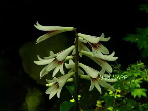 云南大百合Cardiocridum giganteum株高1~2米;地下部基生叶的叶柄基部膨大形成…