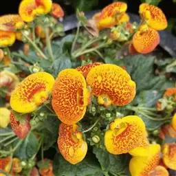 荷包花(学名:Calceolaria crenatiflora Cav.)是玄参科、蒲包花属多年生草本植物,植株高可达30厘米,全株 茎、枝、叶上有细小茸毛,叶片卵形对生。花形别致,花冠二唇状,上唇瓣直立较小,下唇瓣膨大似蒲包状,中间形成空室,柱头着生在两个囊状物之间。花色变化丰富,单色品种有黄、白、红等 深浅不同的花色,复色则在各底色上着生橙、粉、褐红等斑点。