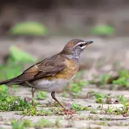 白眉歌鸫,是雀形目鸫科鸫属鸟类。体型略小并具有褐色斑点的歌鸫,上体橄榄褐色,眉纹白色,脸部斑驳,…