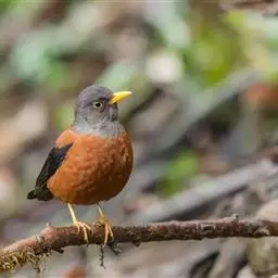 灰头鸫:中型鸟类,体长23-27厘米。整个头、颈和上胸褐灰色,两翅和尾黑色,上、下体羽栗棕色。…