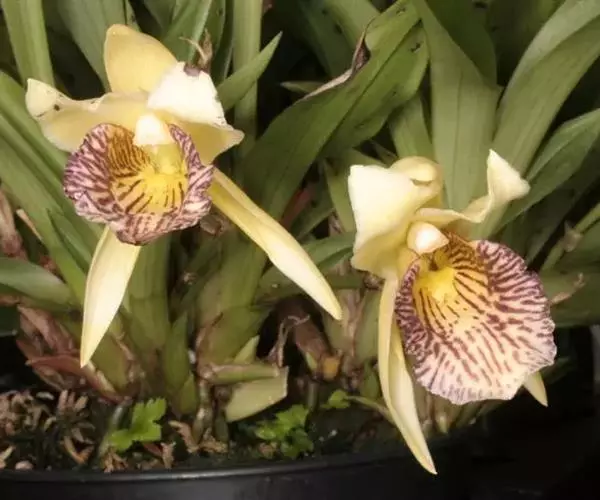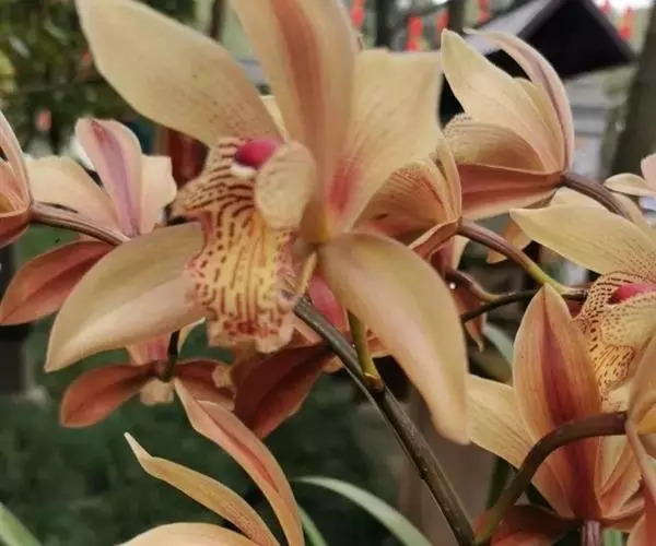 虎头兰(学名:Cymbidium hookerianum Rchb. f.):附生草本;假鳞茎狭椭圆形至狭卵形,长3-8厘米,宽1.5-3厘米,大部分包藏于叶基之内。叶4-8枚。花葶从假鳞茎下部穿鞘而出,外弯或近直立;总状花序具7-14朵花;花大,直径达11-12厘米,有香气;萼片与花瓣苹果绿或黄绿色,基部有少数深红色斑点或偶有淡红褐色晕,唇瓣白色至奶油黄色,侧裂片与中裂片上有栗色斑点与斑纹;花瓣狭长圆状倒披针形。蒴果狭椭圆形。花期1-4月。