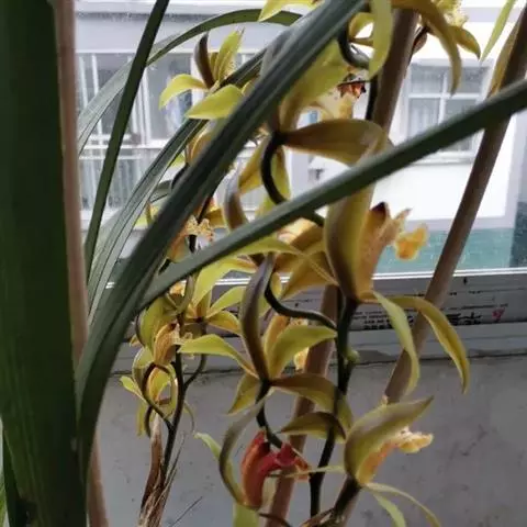 寒兰是兰科兰属的地生草本植物。茎为椭圆形;叶呈带状,尾部修长渐尖,叶脉较明显;每秆花枝开5-12朵,…