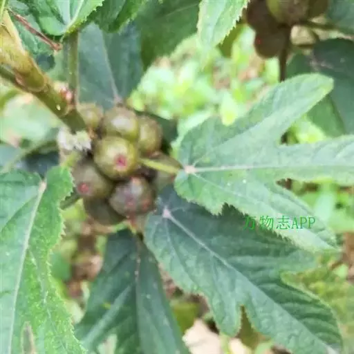 灌木或小乔木,嫩枝中空,小枝,叶和榕果均被金黄色开展的长硬毛。叶互生,纸 质,多型,长椭圆状披针形或广卵形,长10-25厘米,边缘具细锯齿,有时全缘或3- 5深裂,先端急尖或渐尖,基部圆形,浅心形或宽楔形,表面疏生贴伏粗硬毛,背面密或 疏生开展的白色或黄褐色绵毛和糙毛,基生脉3-5条,侧脉每边4-7条;叶柄长2-8 厘米;托叶卵状披针形,长10-30毫米,膜质,红色,被柔毛。