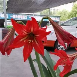 朱顶红 H. E. Moore),石蒜科属多年生草本植物,鳞茎近球形,并有匍匐枝;叶鲜绿色,…