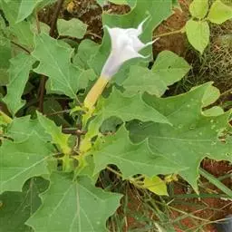 曼陀罗,茄科曼陀罗属一年生大型草本植物,全株光滑。有臭气;叶呈广卯形,…