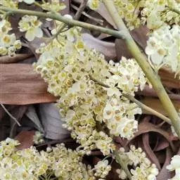 伞形花序单生,少簇生;总梗通常较粗短,长2-5毫米,密被褐色绒毛;每一花序有花4-5朵;花梗被丝状长柔毛;花被裂片6,卵形,外面中肋有丝状长柔毛,雄花中能育雄蕊9-12,花丝有长柔毛;腺体圆形,无柄,退化雌蕊细小,无毛;雌花序较雄花序略小,子房卵圆形,无毛,花柱粗壮,柱头盘状;退化雄蕊细小,基部有柔毛。果长圆形,长11-13毫米,直径7-8毫米,成熟时黑紫色;果托杯状,深约2毫米,直径约5毫米;果梗长2-3毫米。花期5-11月,果期2-6月。
