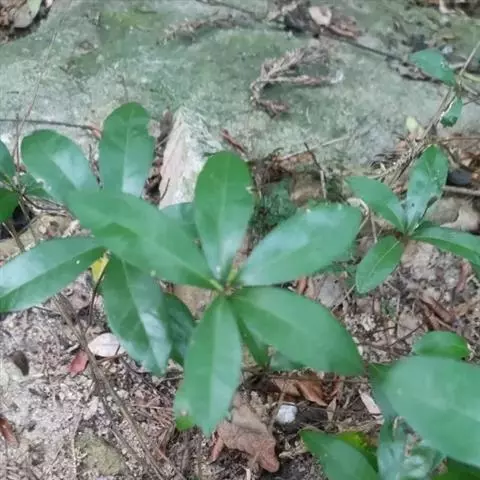 与原变种不同在于叶近轮生,叶片薄革质或膜质,较薄,干时黑绿色;叶柄较短,长2-5毫米,伞形花序无总梗或近于无梗;果托质薄。