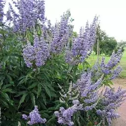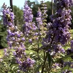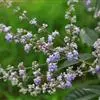 修剪更新:单叶蔓荆萌发力较强,耐修剪。通过修剪更新,萌发的新枝多,枝条粗壮,结果多,果实大,产量高。为使植株早日封行,在定植后的3-4年内,其主茎蔓不打顶,仅诱导其按规定方向生长,以求均匀分布于林地。