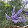圆锥花序顶生,长3-15厘米,花序梗密被灰白色绒毛;花萼钟形,顶端5浅裂,外面有绒毛;花冠淡紫色或蓝紫色,长6-10毫米,外面及喉部有毛,花冠管内有较密的长柔毛,顶端5裂,二唇形,下唇中间裂片较大;雄蕊4,伸出花冠外;子房无毛,密生腺点;花柱无毛,柱头2裂。核果近圆形,径约5毫米,成熟时黑色;果萼宿存,外被灰白色绒毛。花期7-8月,果期8-10月。