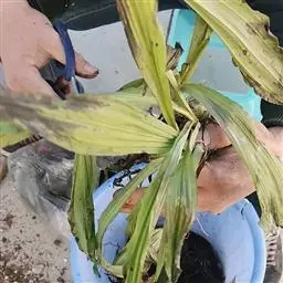 三棱虾脊兰:根状茎不明显。假鳞茎圆球状,粗约2厘米,具3枚鞘和3-4枚叶。假茎粗壮,鞘大型,先端钝,…