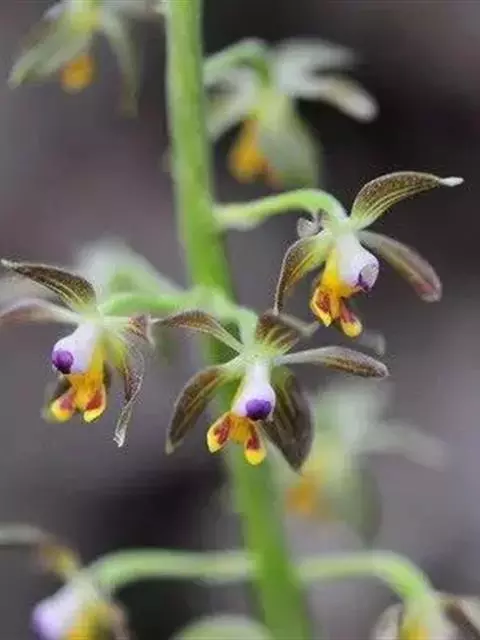 钩距虾脊兰:根状茎不明显。假鳞茎短,近卵球形,粗约2厘米,具3-4枚鞘和3-4枚叶。叶在花期尚未完…
