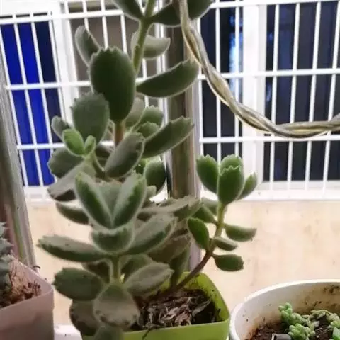 达摩福娘景天科银波锦属多肉植物,属于小型灌木类,由于杆子很细,所以很难支撑一直向上生长,会满满匍匐向下生长。出状态后,叶尖尖端呈粉红色。
