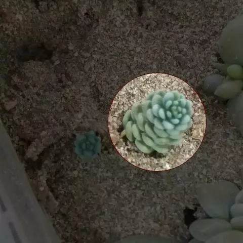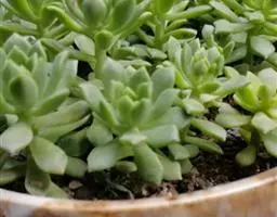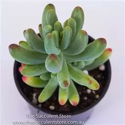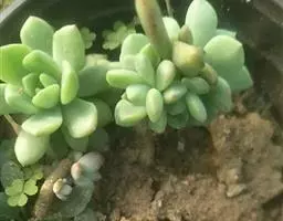 蓝黛莲是一种景天科厚叶草属植物。叶片呈略扁的圆柱形,排列成莲座状;颜色为灰绿色,…