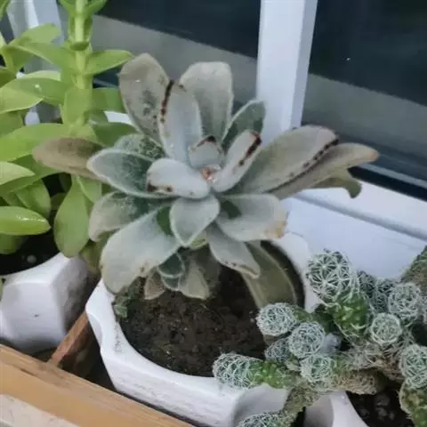 褐斑伽蓝是景天科伽蓝菜属的多年生多肉类植物,茎直立,多分枝,叶生于枝上,肉质叶片匙形,…