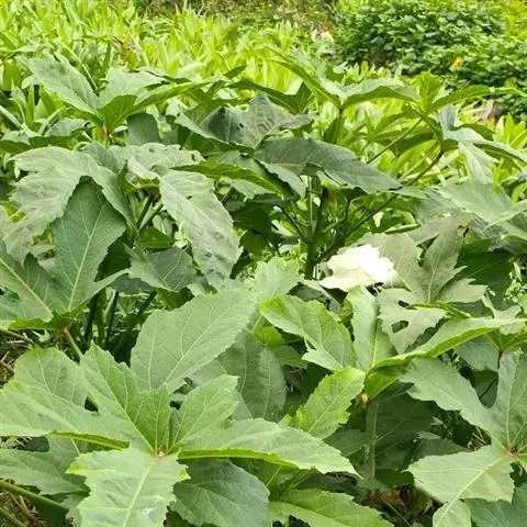 咖啡黄葵 Moench)亦称黄秋葵,是锦葵科一年生草本植物。茎圆柱形,疏生散刺。叶掌状,裂片阔至狭,…