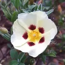 岩蔷薇是半日花科岩蔷薇属植物,多年生直立亚灌木,高约1.5-2.5米,全体具胶黏腺体。枝条褐色,…