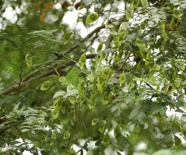 荚果薄革质,舌状长圆形,长5-7.5厘米,宽1.5厘米,有种子1-2粒;种子肾形,扁平,长约11毫米,宽约5毫米。花期2-4月。