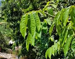 苗期和幼树期,常见的有枝叶病斑。在雨季蔓延比较迅速,严重时整个叶片均显黑色,致使叶子大量脱落,严重影响幼树的生长。此外,嫩叶和嫩梢上也会发生炭疽病,在叶片上,显现圆形褐色小病斑,其上有黑色小点;在嫩枝上发病处呈黑色,逐渐干枯。