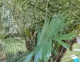 霸王棕是棕榈科霸王棕属常绿乔木,高可达20~30米。基部膨大,叶基宿存。叶片扇形,掌状分裂,…